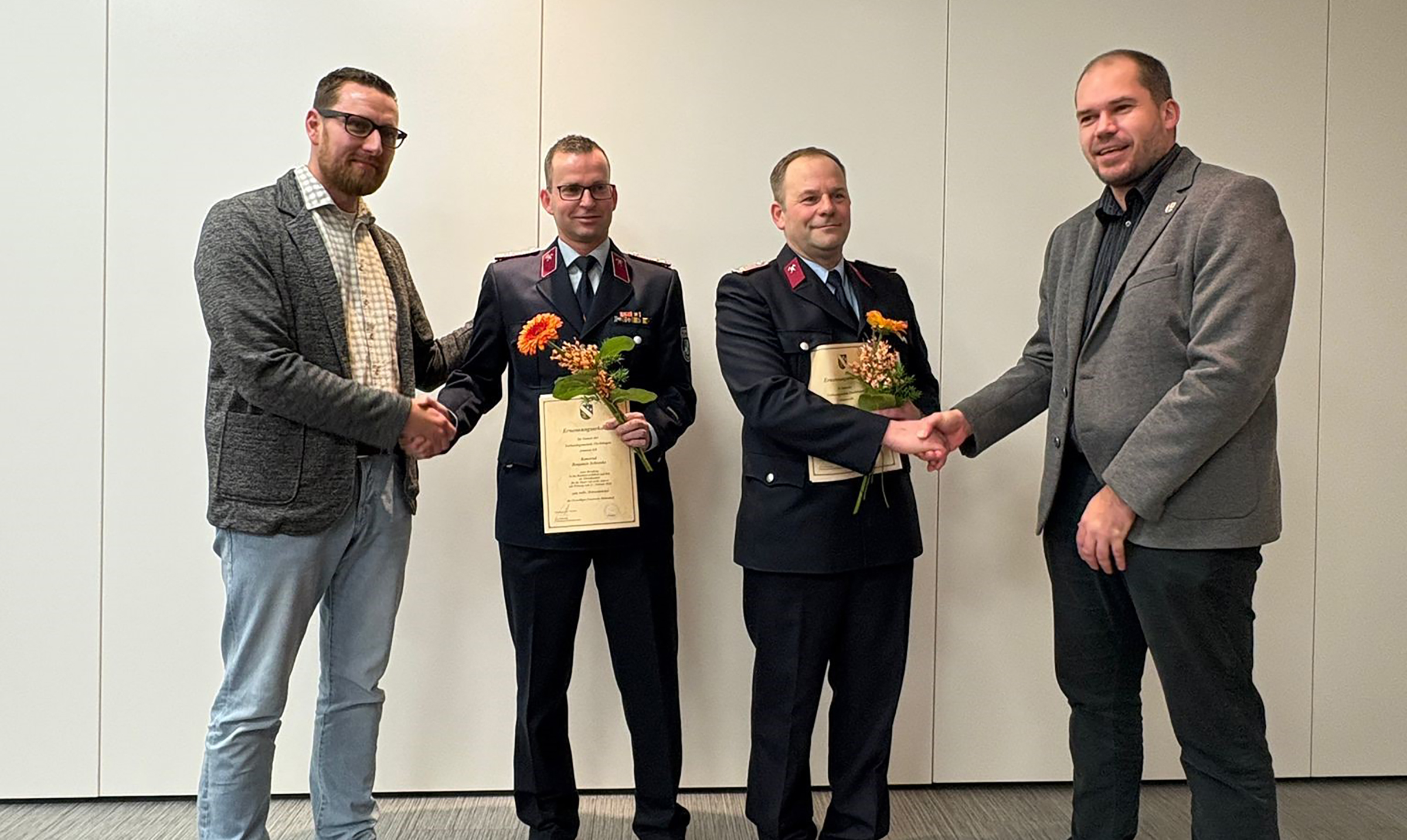 Mit Wirkung des 17.02.2026 wird der Kamerad René Stottmeister zum Ortswehrleiter der Freiwilligen Feuerwehr Belsdorf für die Dauer von sechs Jahren in das Ehrenamt berufen. Ebenfalls für die Dauer von sechs Jahren soll der Kamerad Benjamin Schrenke zum stellvertretenden Ortswehrleiter der Freiwilligen Feuerwehr Behnsdorf in das Ehrenamt berufen werden. Beide Kameraden übernehmen damit verantwortungsvolle Führungsaufgaben im Dienst der Allgemeinheit. Die Verbandsgemeinde spricht ihnen ihr Vertrauen aus und dankt für ihre Bereitschaft, diese anspruchsvollen Funktionen zu übernehmen. Mit Wirkung vom 01.02.2026 wird Kamerad Andreas Wolter von seiner Funktion als Gemeindewehrleiter der Verbandsgemeinde Flechtingen abberufen. Zusätzlich erfolgte die Abberufung in seiner Funktion als Ortswehrleiter der Ortsfeuerwehr Calvörde. Kamerad Wolter hat über viele Jahre hinweg Führungsverantwortung getragen und sich in besonderer Weise um das Feuerwehrwesen in der Verbandsgemeinde verdient gemacht. Für seinen engagierten und pflichtbewussten Einsatz wird ihm ausdrücklich gedankt. Im Rahmen der offiziellen Ernennungs- und Verabschiedung erhielten die ernannten sowie verabschiedeten Kameraden als Zeichen der Anerkennung und des Dankes jeweils Urkunden sowie Blumenpräsente. Andreas Wolter erhielt als besondere Anerkennung eine Ehrenurkunde sowie das Ehrenkreuz des Kreisfeuerwehrverbandes Ohrekreis e.V. in Silber.