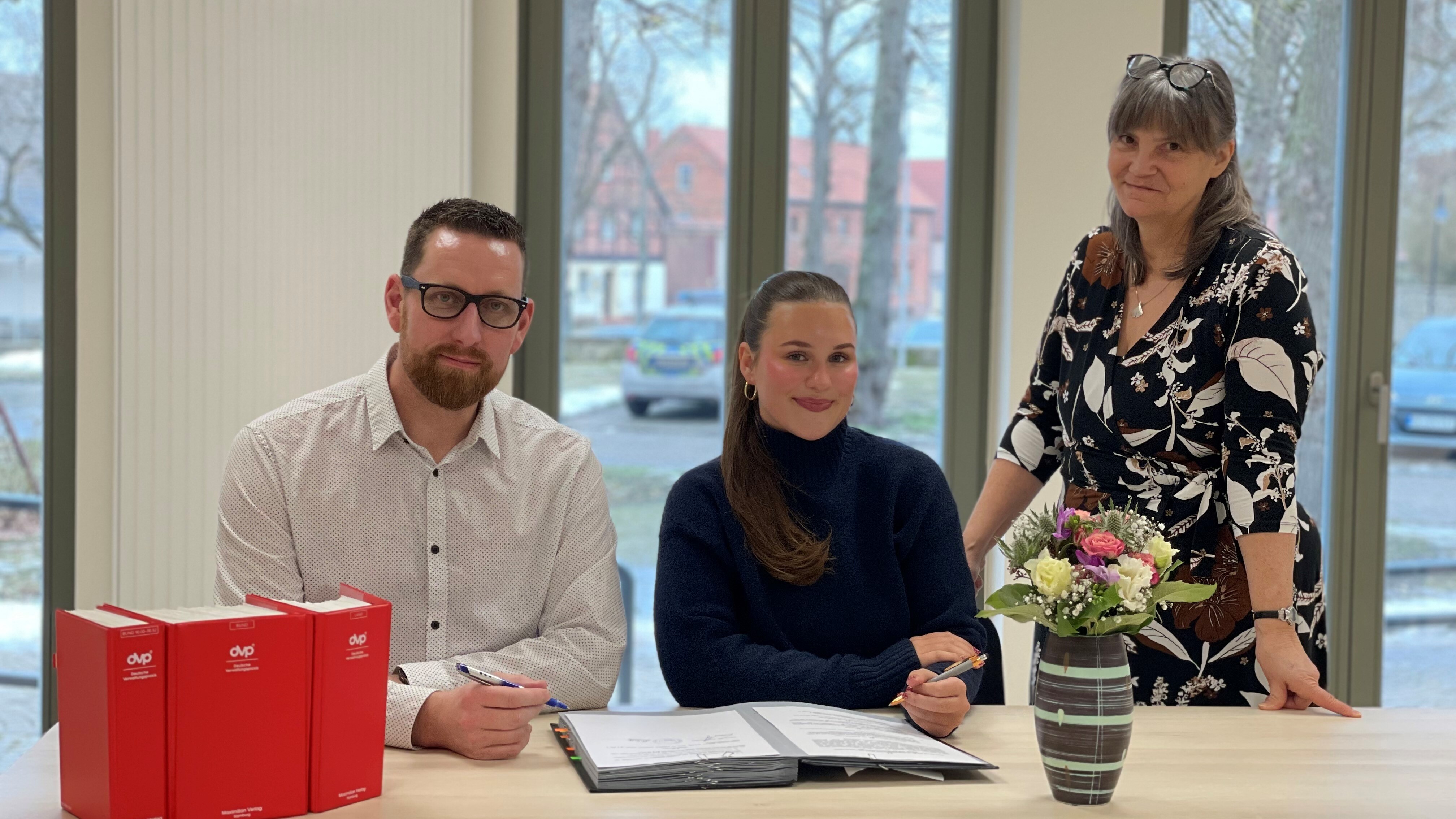 Derzeit absolviert Neele Ziep noch ihre Fachhochschulreife im Bereich Wirtschaft an den Berufsbildenden Schulen in Althaldensleben. Die Abschlussprüfung steht im Mai bevor. Die 18-Jährige lebt in Haldensleben und wird während ihrer Ausbildung zwischen den Dienststellen der Verbandsgemeinde sowie dem Landkreis Börde und der SIKOSA in Magdeburg pendeln. Schon beim Termin zur Vertragsunterzeichnung berichtete sie mit sichtbarer Freude von ihrer Vorfreude auf den neuen Lebensabschnitt.