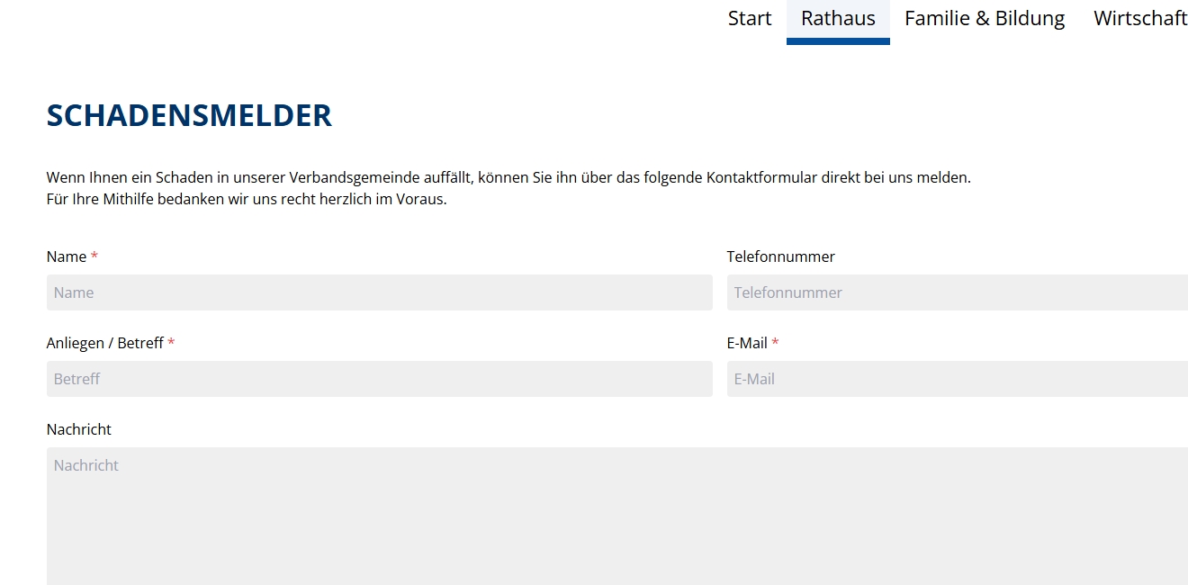 Ab sofort können Sie Schäden unkompliziert online über unser Kontaktformular direkt an die Verwaltung reichen.